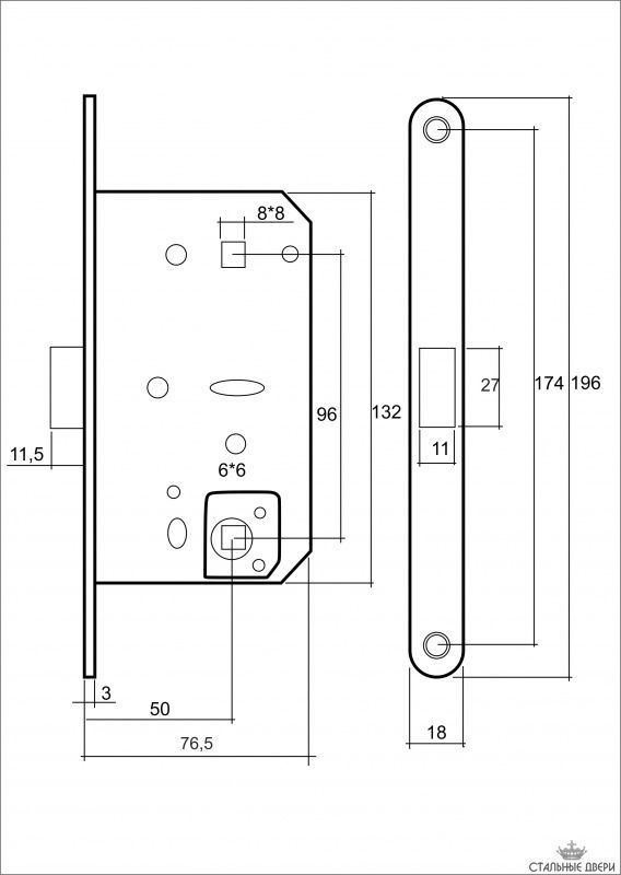 | Размер сечения квадрата фиксатора | 6 мм |